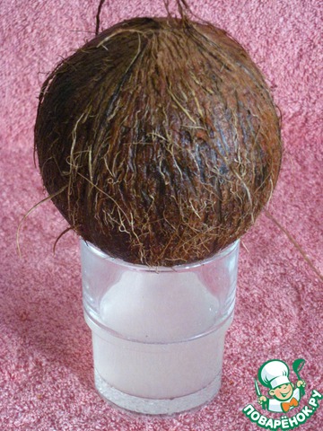 Кокос помыть, сделать отверстие и извлечь молоко.