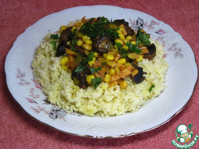 Карри из пшена с грибами и кокосовым молоком