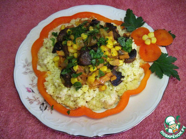 Грибы и кукурузу соединить с пшеном.