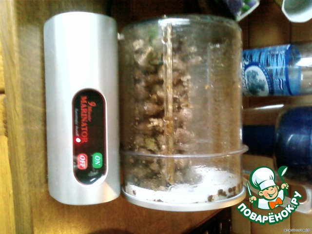 Отварила сердечки 20 минут и замариновала их со специями и с соевым соусом.