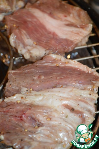 Мясо (без лука) выложить на решетку гриля и жарить до готовности.