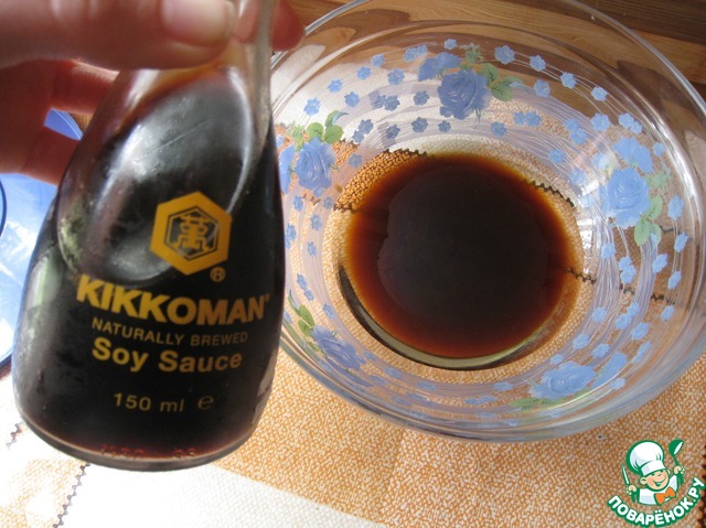 Для маринада смешать соевый соус "Киккоман", растительное масло и мед.