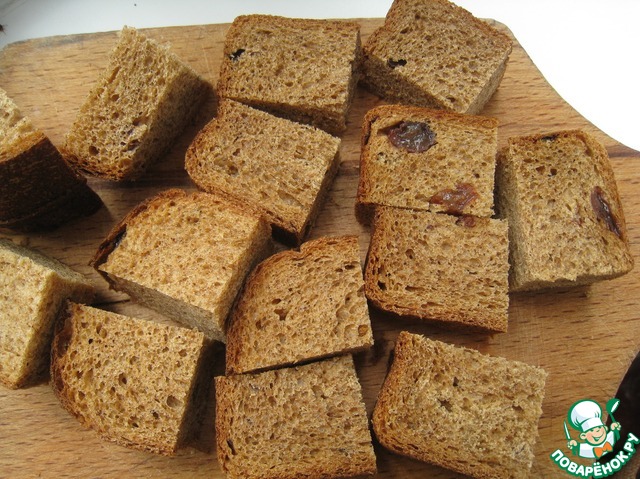 Нарезать хлеб и сало кубиками (у меня кубики хлеба в 2 раза больше)