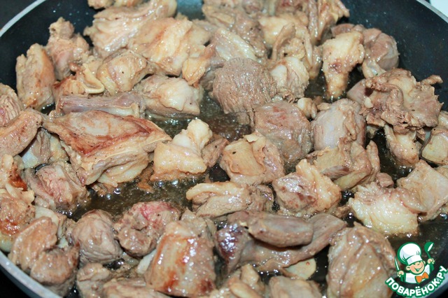 Мясо обжариваем с двух сторон до румяной корочки на небольшом количестве масла.