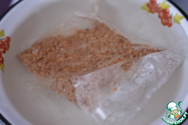 Отвариваем в подсоленной воде гречку (у меня пакетированная гречка).
