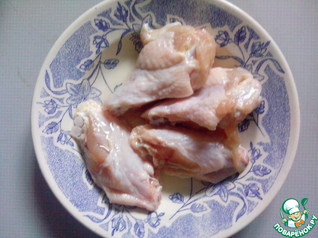 Разрезаем крылышки на половинки. это поможет лучше уложить мясо в горшочки