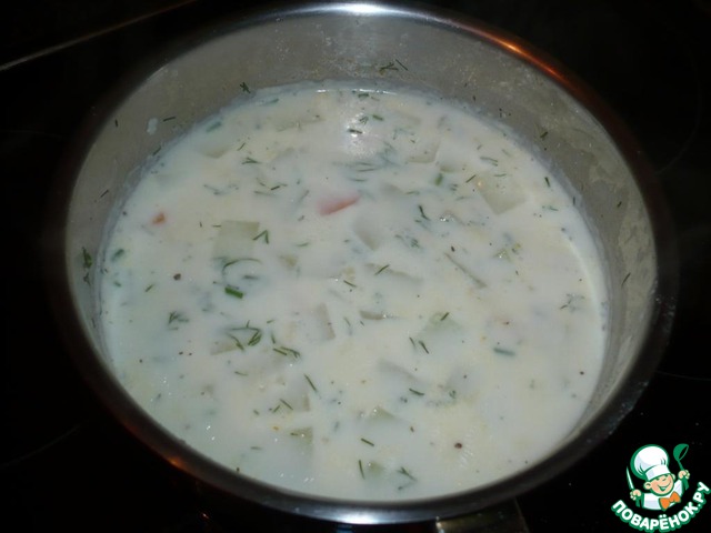 В кастрюльку налить 0,5 стакана воды, вскипятить, добавить овощи и соль! Вода должна покрывать овощи наполовину! Варить овощи 10 минут, иногда помешивая, чтобы они равномерно проваривались! Добавить сливки, поперчить, добавить укроп, чеснок и перец! Кто любит погуще, добавьте 1-2 ст. л. прокаленной на сковороде муки. Варить всё вместе на медленном огне до готовности! Овощи должны быть альденте - не переваренными!