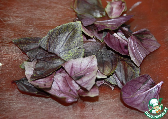 Порезать листочки базилика пополам, если большие, маленькие оставить такими. За 5 минут до готовности томатной пасты добавить базилик, перемешать, томить оставшееся время и снять с плиты.