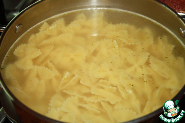 При подаче блюда соус выкладываем на приготовленную пасту.