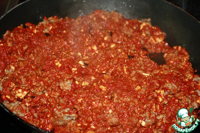 Когда фарш будет готов, соединить его с нашим соусом. Хорошенько перемешать.