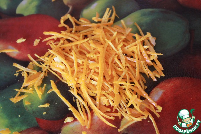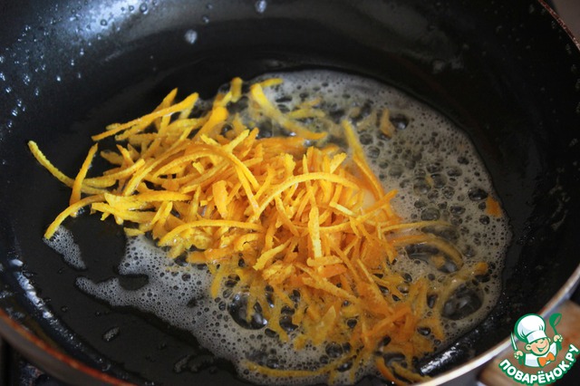 Моем апельсин и счищаем с него цедру. Стараемся счищать только оранжевую часть - самую ароматную.