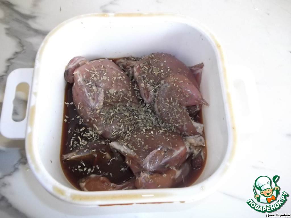 Укладываем перепёлок в ёмкость, заливаем соусом "Терияки" kikkoman