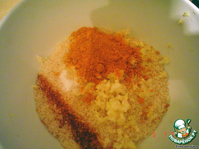 - порошок карри, измельченный чеснок, соль, перец, натертый сыр