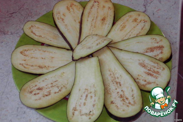 Режем баклажаны вдоль на пластины толщиной 0.5 см