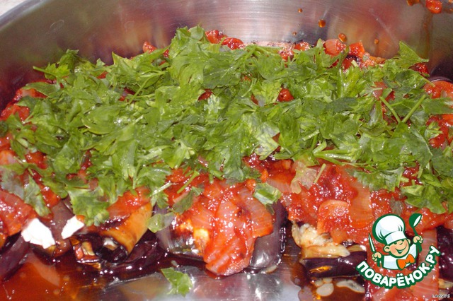 посыпаем петрушкой, ставим в духовку на полчаса на 180 градусов. Готово!