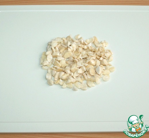 Обжарить на сухой сковороде и переложить в тарелочку (обжаренный миндаль понадобится позже).