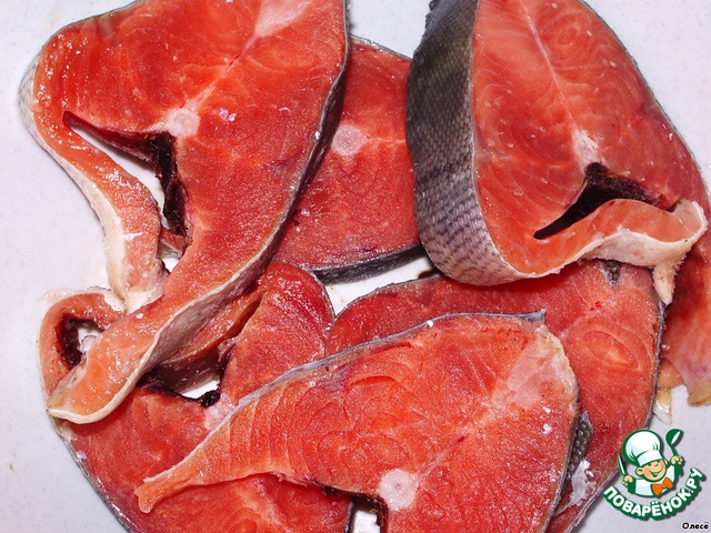 Рыбу почистить, нарезать ломтиками тольщиной примерно 1 см.