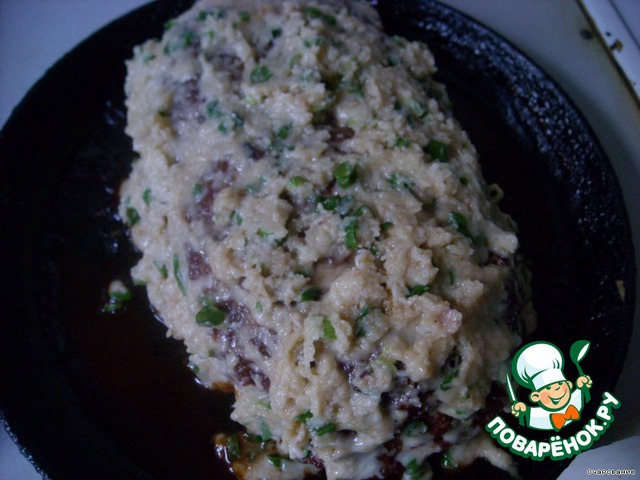Обмазка: сыр натереть на терке, добавить горчицу. Взбить белок и смешать с сыром.