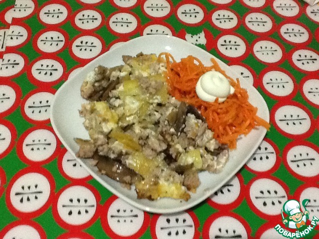 | Искала на сайте что можно приготовить с фаршем и грибами, чтоб быстро и сытно, но как то во всем много ингредиентов! Решила с импровизировать из того что есть! Получилось вкусненько! Этой мой первый рецепт здесь, может и есть такие, если да то сильно не ругайте ))) |