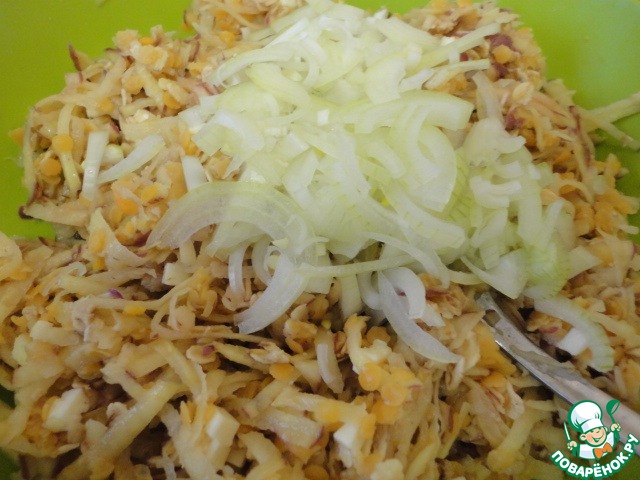 Соеденить картофель, мелко нарезанный тофу, чечевицу, овсяные хлопья.