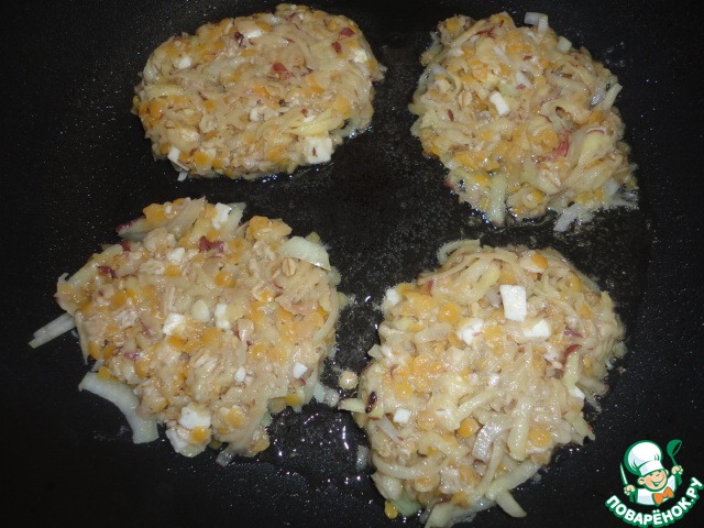 Хорошо перемешать и обжарить на разогретом растительном масле, по 2 минуты с каждой стороны.