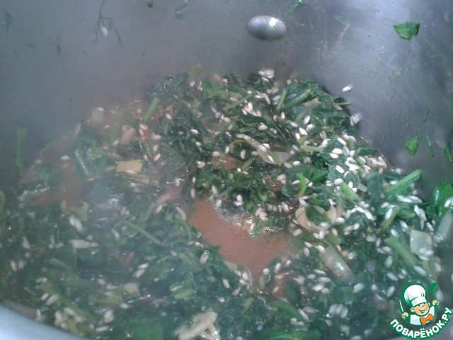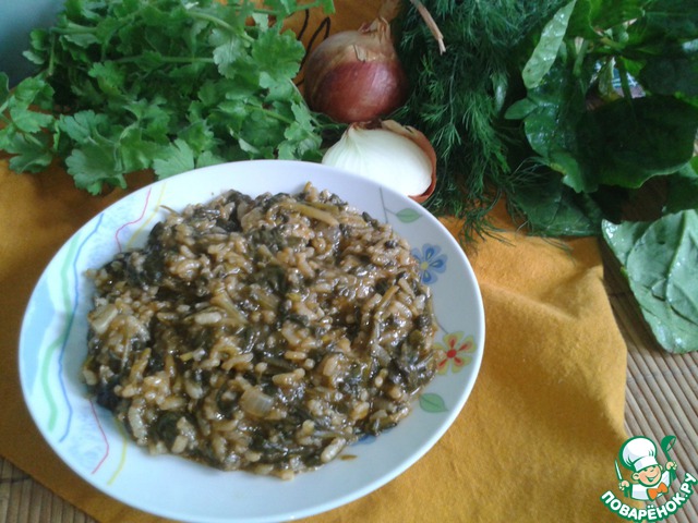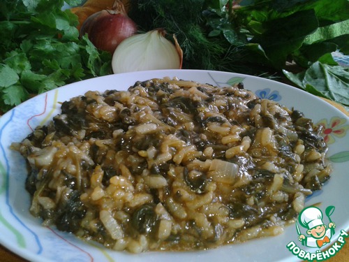 | Рис со шпинатом и др. зеленью. Греческое блюдо, очень простое, но очень сытное и полезное. Встретила 2 подобных названия, но суть несколько иная. |