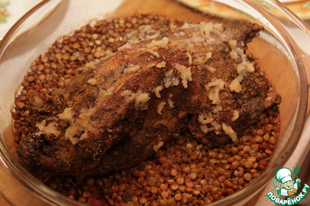 Сбрызните уточку с чечевичным гарниром лимонным соком и наслаждайтесь изысканным вкусом! Приятного аппетита!