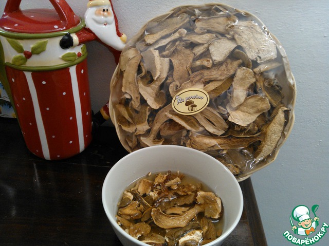 Грибы заливаем горячей водой и оставляем их до приобретения мягкости.