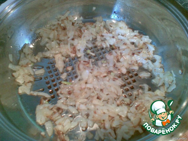 Лук помыть, почистить, нарезать. Затем обжарить до золотистой корочки.