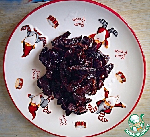 Перец готов. Теперь промоем чернослив и нарежем его небольшими кусочками.
