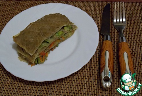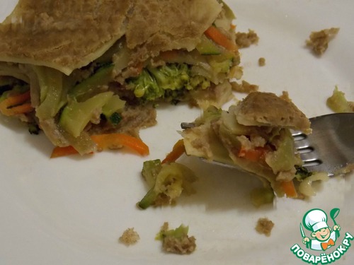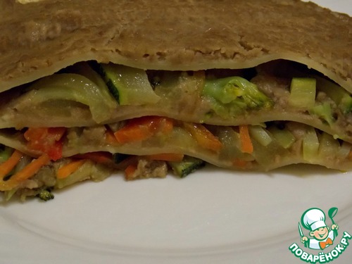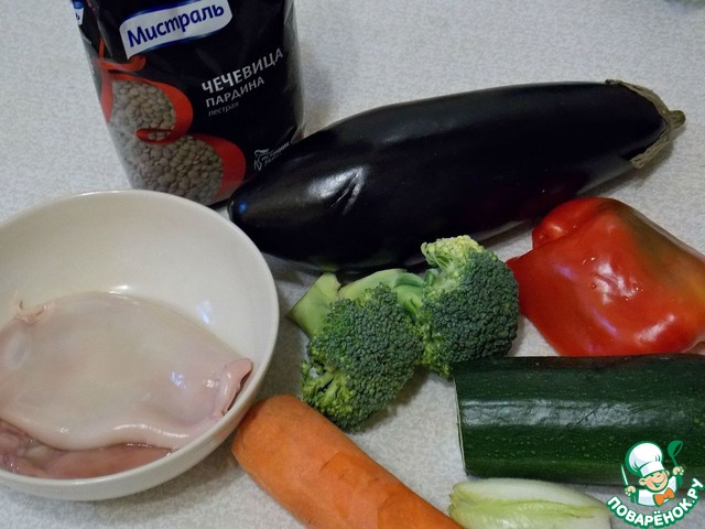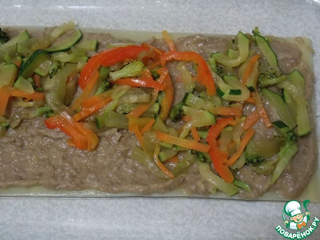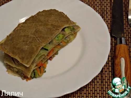 Овощная "лазанья" с чечевично-кальмаровым соусом