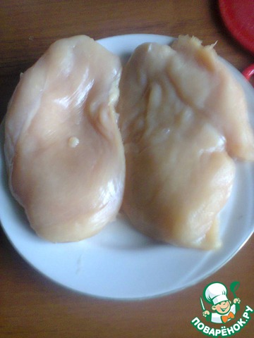 Итак. На 2 порции нам понадобится куриная грудка. разделяем ее на 2 филе. С тыльной стороны филе обрезаем мясо, которое находится, так сказать, в свободном полете. Обрезаем также С тонкой части филе мясо, придавая ему овальную форму. Со стороны утолщенной части прорезать по всей длине острым ножом карман.