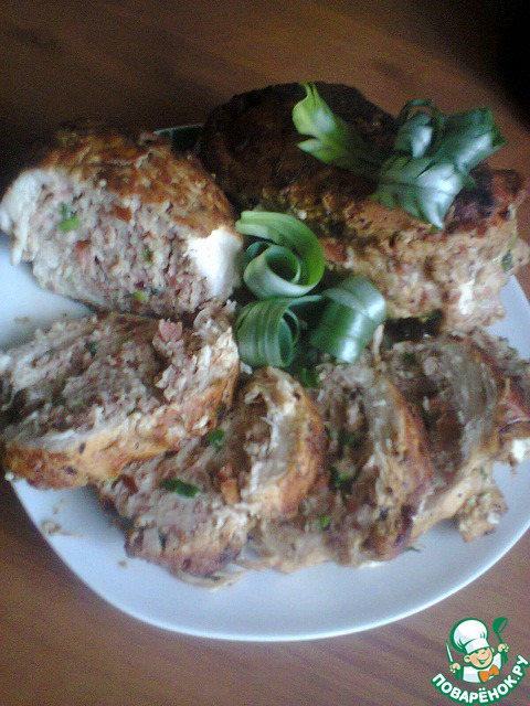 | Оригинальная и очень вкусная закуска из фаршированного куриного филе. Если хорошенько охладить, то отличная альтернатива магазинной колбасе. И для праздничного стола отлично подойдет. |
