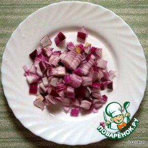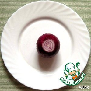 Почистить лук. У меня оказался в наличии только синий. Лучше, конечно белый, а так же подойдет и зеленый.