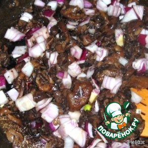 и добавить в притушенные грибы. Обжарить. Посолить.