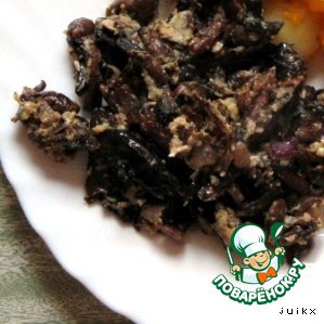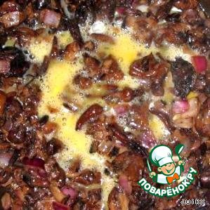 И добавить в сковородку. Перемешать. Когда яйца приготовятся – грибы готовы.