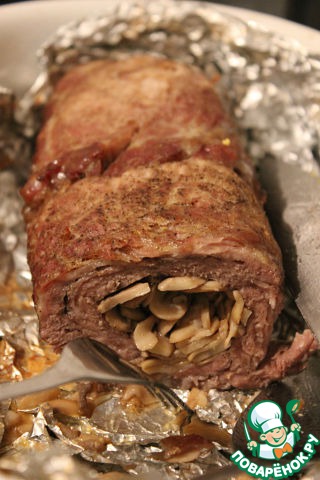Мясной рулетик с шампиньонами и целыми яйцами