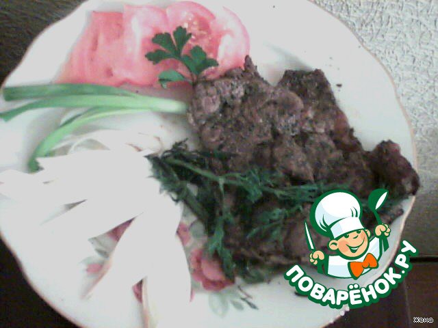 Отбить вырезку, посыпать перцем и солью, приправой для баранины и оставить минут на 15 - 20 отдыхать. Обжарить очень быстро на большом огне. Убавить огонь, полить соевым соусом и довести до готовности.