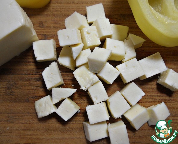 Сыр средними кубиками.