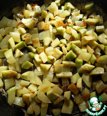 В небольшом количестве оливкового масла обжарьте в течении нескольких минут авокадо и кубики перца.