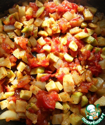 Затем отправьте в перцу и авокадо помидор, посолите и поперчите. Тушите еще пару минут.