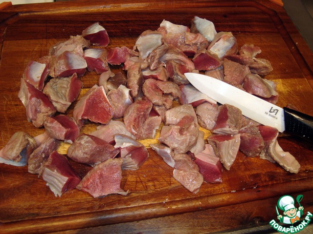 1. Желудки тщательно очищаем, моем, режем на четыре части, варим примерно 1.5 часа. У меня были желудки индейки, поэтому их резала еще мельче.