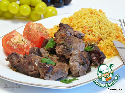 | Пряная, нежная баранина во вкусном маринаде, как говорится, "можно жевать губами". На гарнир к ней я приготовила ароматнейший кус-кус с овощами, рецепт можно посмотреть здесь http://www.povarenok .ru/recipes/show/408 71/ |