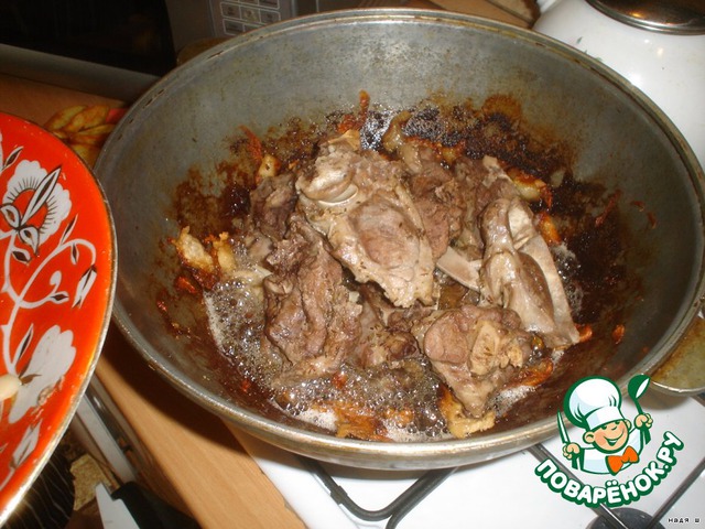 Мясо укладывать начинаем также с середины казана