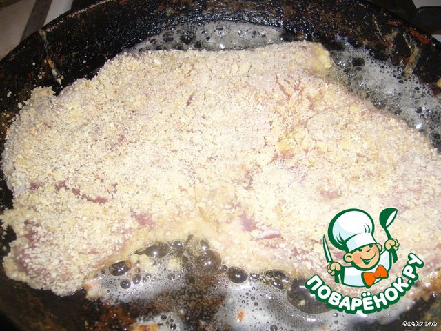 Окунаем в яйцо, взбитое с молоком, обваливаем в сухарях,