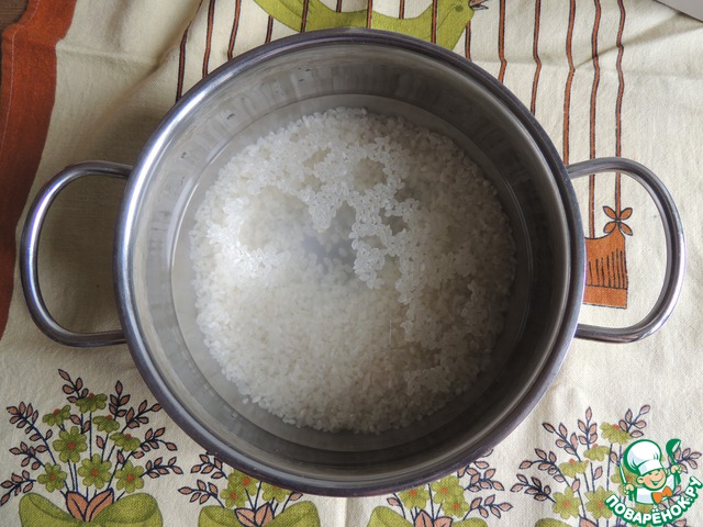 Для начинки нам нужно приготовить рис. Я выбираю Рис Мистраль Италика. Это идеальный рис для начинок. Положить Рис в кастрюлю с водой в соотношении 1:2 и сварить ПОЧТИ до готовности.