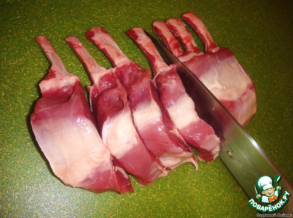 Первым делом мы промываем мясо и разделяем на порционные куски — по одному рёбрышку на каждый.