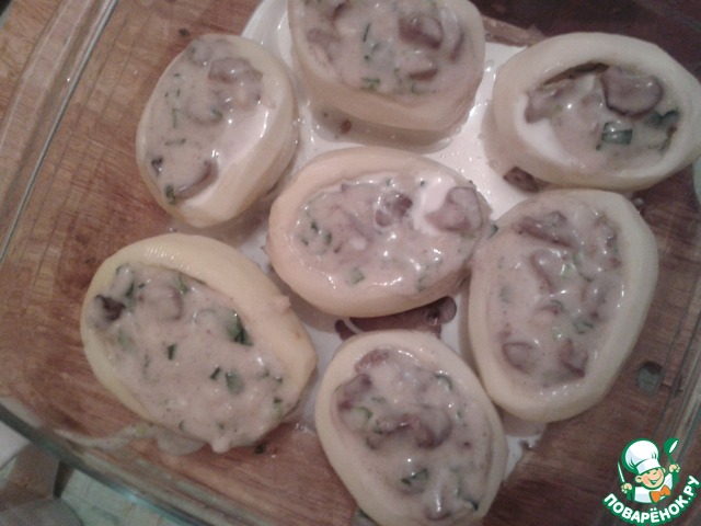 | Тонкие "стаканчики" из картофеля, а внутри... нежные сердечки в сливочном соусе с чесночком и зеленью... мммм... Пробуйте =) |