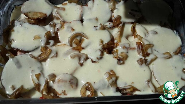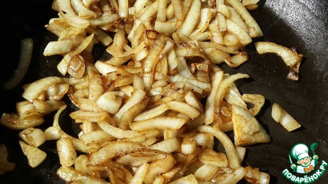 На сливочном масле обжарить лук, до румяности. посолить-поперчить.