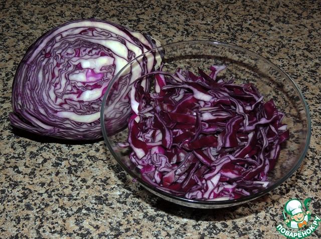 Капусту (3/4 небольшого кочана) нарезать соломкой.